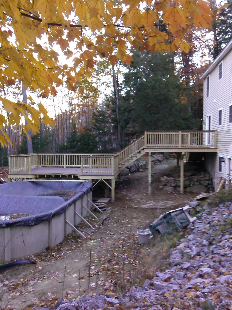 a) #1 building materials. We use Mast Road Lumber. They supply #1 pressure treated material, (only 6X6 pressure treated is sold as #2 but is smooth and generally not available in #1) Why is this important? #2 has more knots which weakens the integrity of the material. It costs a little more, but you do not have to worry that your floor joists are going to weaken and break over time.